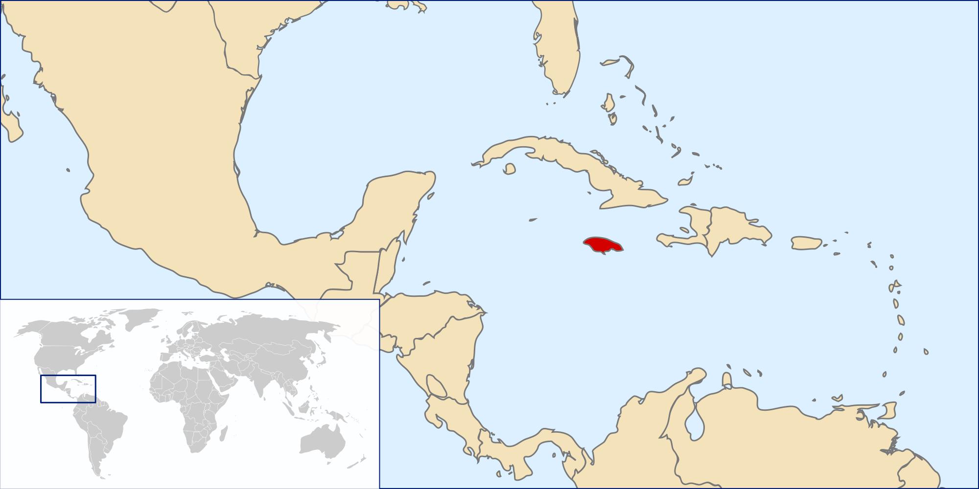 Mapa ng mundo na nagpapakita ng jamaica